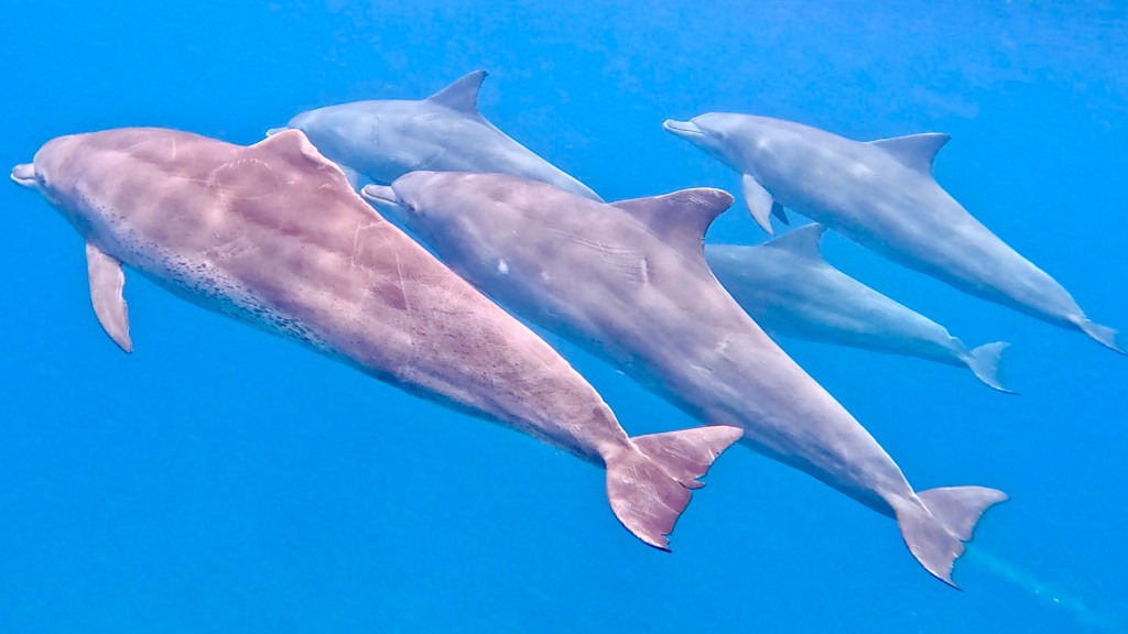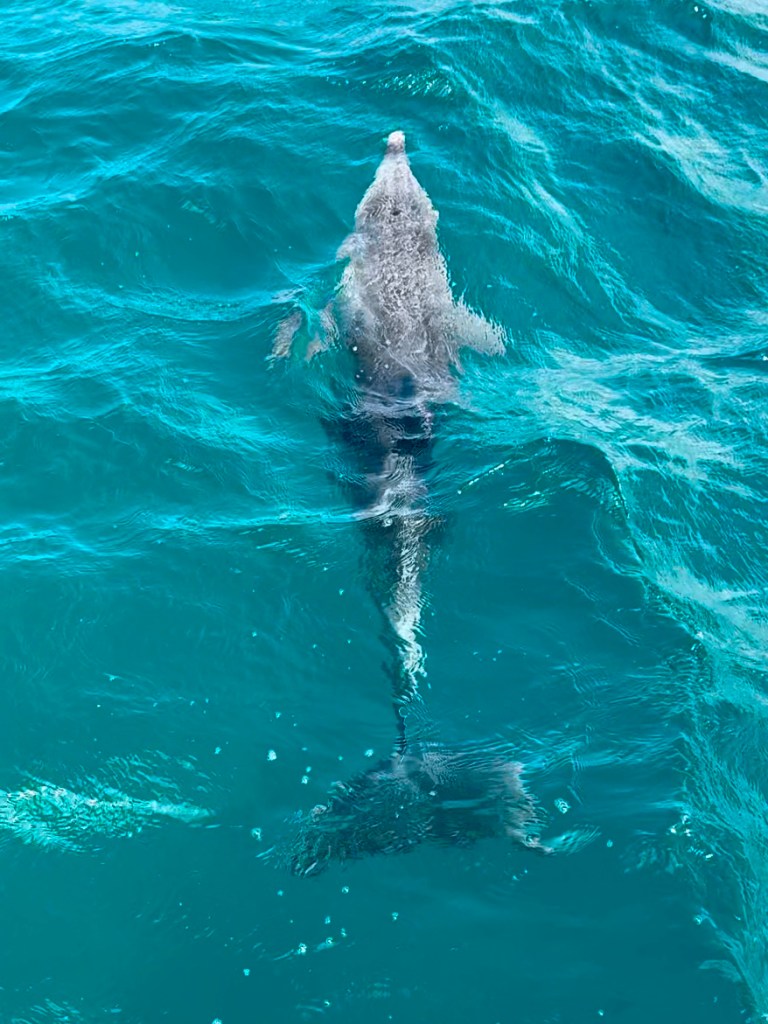 Dès le matin, nous avons embarqué pour une rencontre respectueuse avec les dauphins. Ce qui rend cette expérience unique, c’est leur approche : lorsque les dauphins étaient repérés, les skippers nous emmenaient à distance pour ne pas perturber les animaux, puis nous sautions à l’eau et attendions que les dauphins viennent à nous. Une rencontre intime, émouvante et hors du commun.