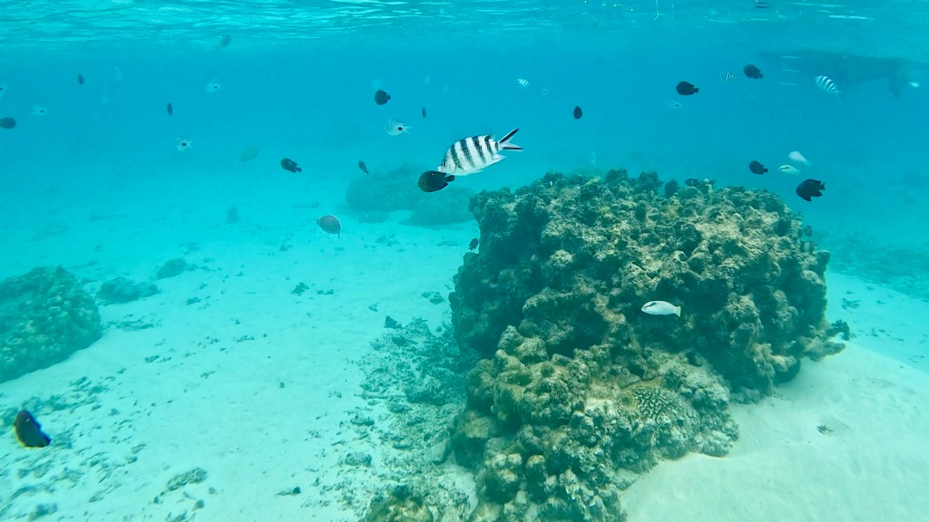 Nous avons ensuite plongé dans des eaux cristallines dignes d’un aquarium naturel. Les coraux et poissons nous entouraient, offrant un spectacle vibrant et apaisant.