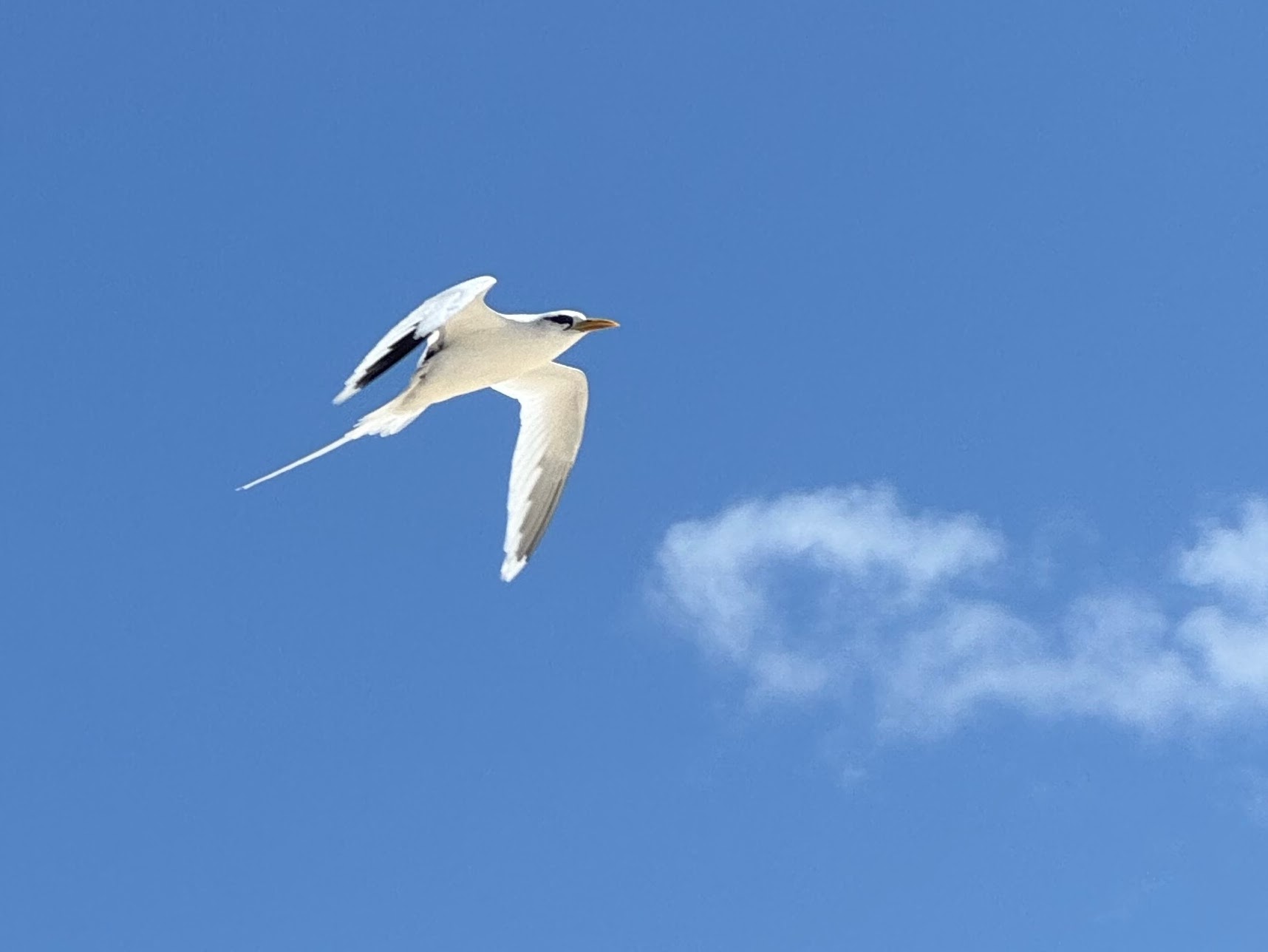 Lors de notre visite, nous avons eu la chance d’apercevoir quelques paille-en-queue, ces oiseaux marins caractéristiques, qui ajoutent encore plus de charme à cet endroit.
