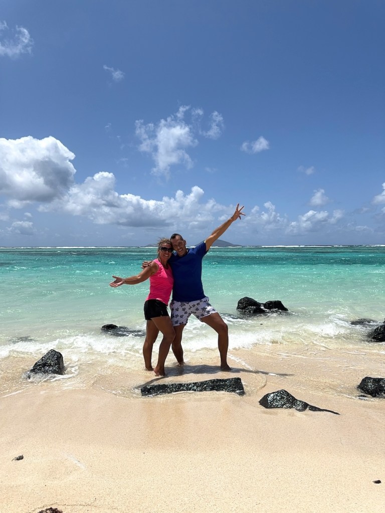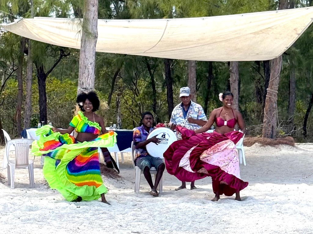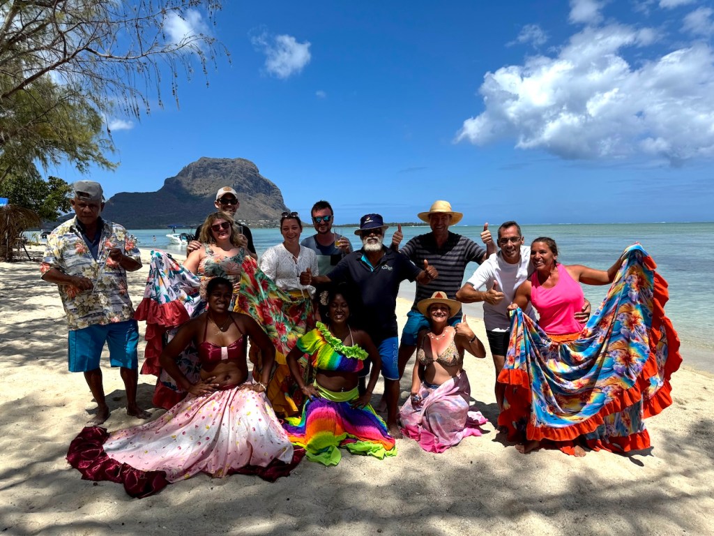À notre arrivée sur l’île, nous avons été accueillis chaleureusement par l’équipe de Karlos Excursion, qui nous a offert un véritable moment d’authenticité mauricienne. Les employés, vêtus de tenues traditionnelles, dansaient le séga, une danse emblématique de l’île. Avec un cocktail de bienvenue à la main et des jupes prêtées sur place, nous avons appris quelques pas de danse dans une ambiance tout simplement magique !