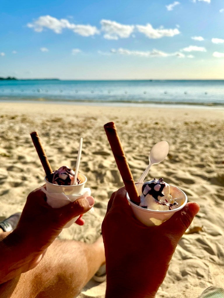 Mont Choisy est une plage qui nous a vraiment séduits pour sa capacité à offrir deux ambiances différentes. Le dimanche, elle s’anime avec les locaux venus profiter de l’ambiance conviviale, savourer des glaces et des repas dans les food trucks. Nous avons adoré l’atmosphère décontractée et la chance de goûter à un peu de la vie locale. En semaine, la plage est beaucoup plus calme, idéale pour se détendre. Et le coucher de soleil ? Un moment magique, que l’on ne voulait surtout pas manquer.
