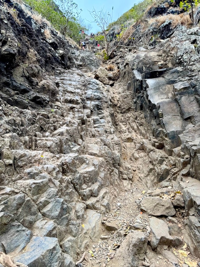 L’ascension jusqu’au sommet présente des passages assez raides qui requièrent une attention particulière. Il est fortement recommandé de porter une paire de chaussures de randonnée pour naviguer sur les sentiers rocailleux et escarpés. La deuxième partie de la randonnée, qui consiste en de l’escalade sans corde ni équipement d’assistance, peut être plus exigeante. Il est conseillé de la poursuivre uniquement si vous vous sentez vraiment à l’aise et en confiance.