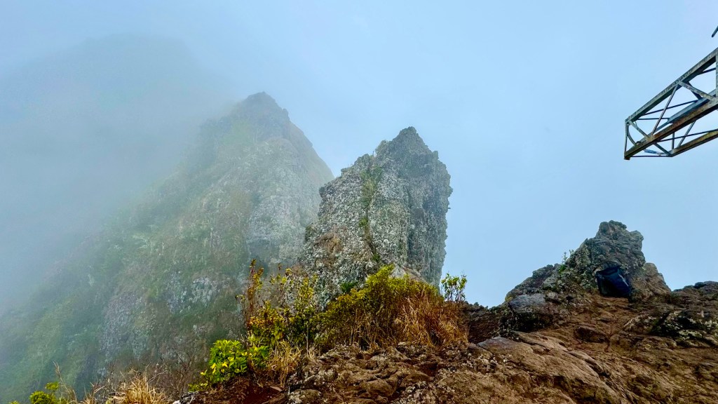 Malheureusement, une météo capricieuse s’est invitée lors de notre montée : brume épaisse et pluie fine nous ont privés de la vue à couper le souffle qu’offre habituellement le sommet. Mais quelle fierté d’avoir atteint le sommet malgré tout ! Parfois, l’aventure ne réside pas uniquement dans la destination, mais dans le chemin parcouru.